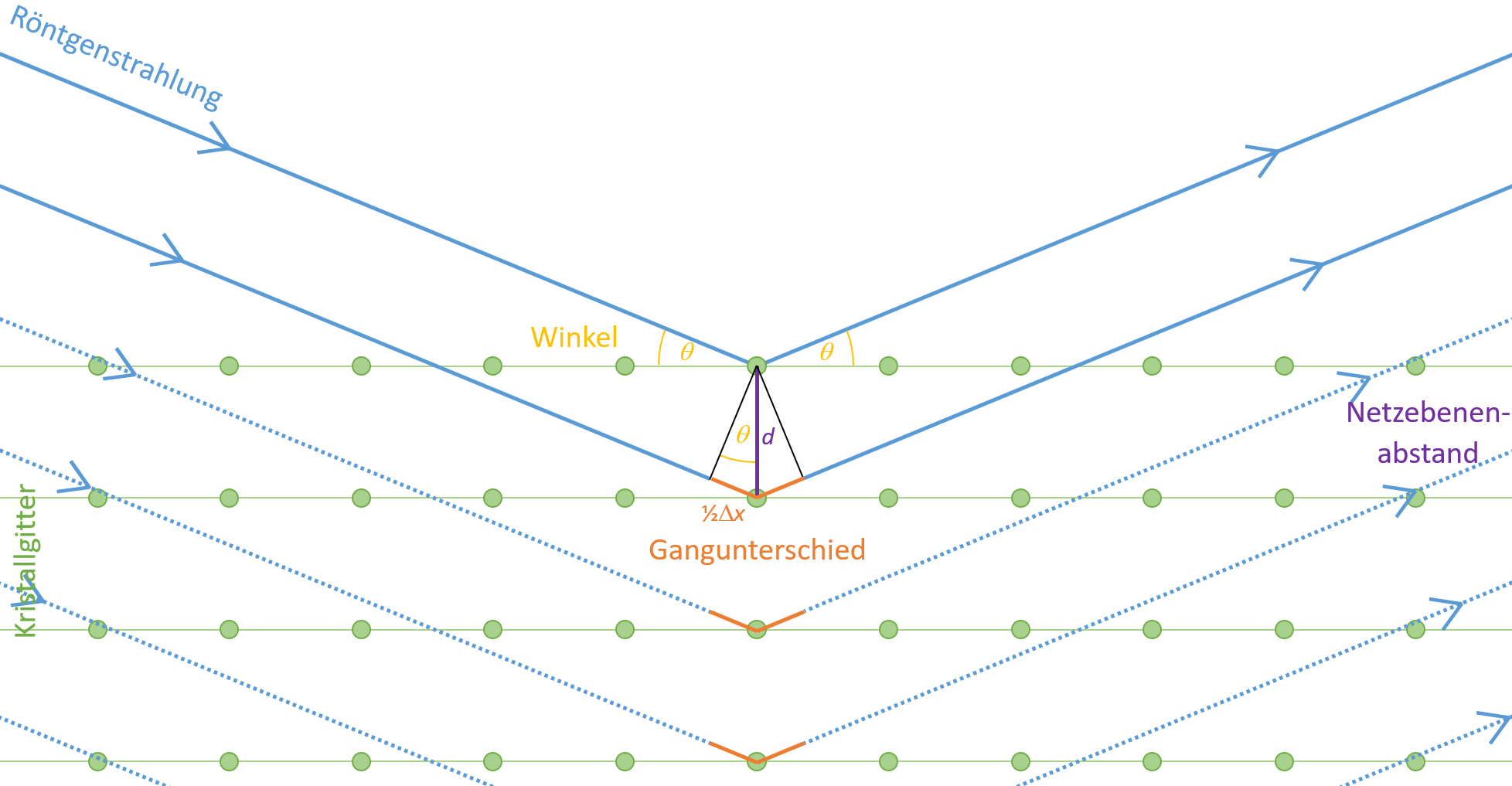 In der Röntgen-Spektroskopie werden mithilfe der Bragg-Reflexion Material-Proben auf ihre Struktur hin untersucht.