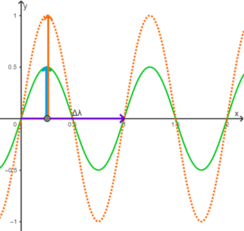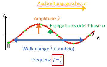 Wellenlänge λ in m: Länge zwischen zwei gleichschwingenden Oszillatoren (z.B. von Maximum zum nächsten Maximum)