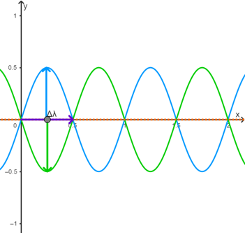 Dabei entspricht die Länge zweier Bäuche der Wellenlänge der ursprünglichen Wellen.