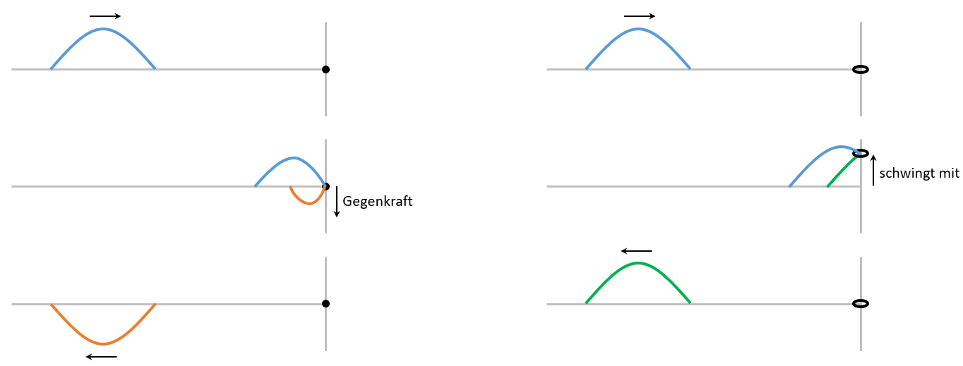 Man unterscheidet zwischen der Reflexion an einem festen Ende und an einem losen Ende.